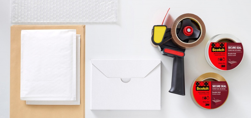 taśma pakowa Scotch® Secure Seal charakteryzuje się bezpiecznym i trwałym klejem, który mocno trzyma i chroni paczki podczas transportu i przechowywania