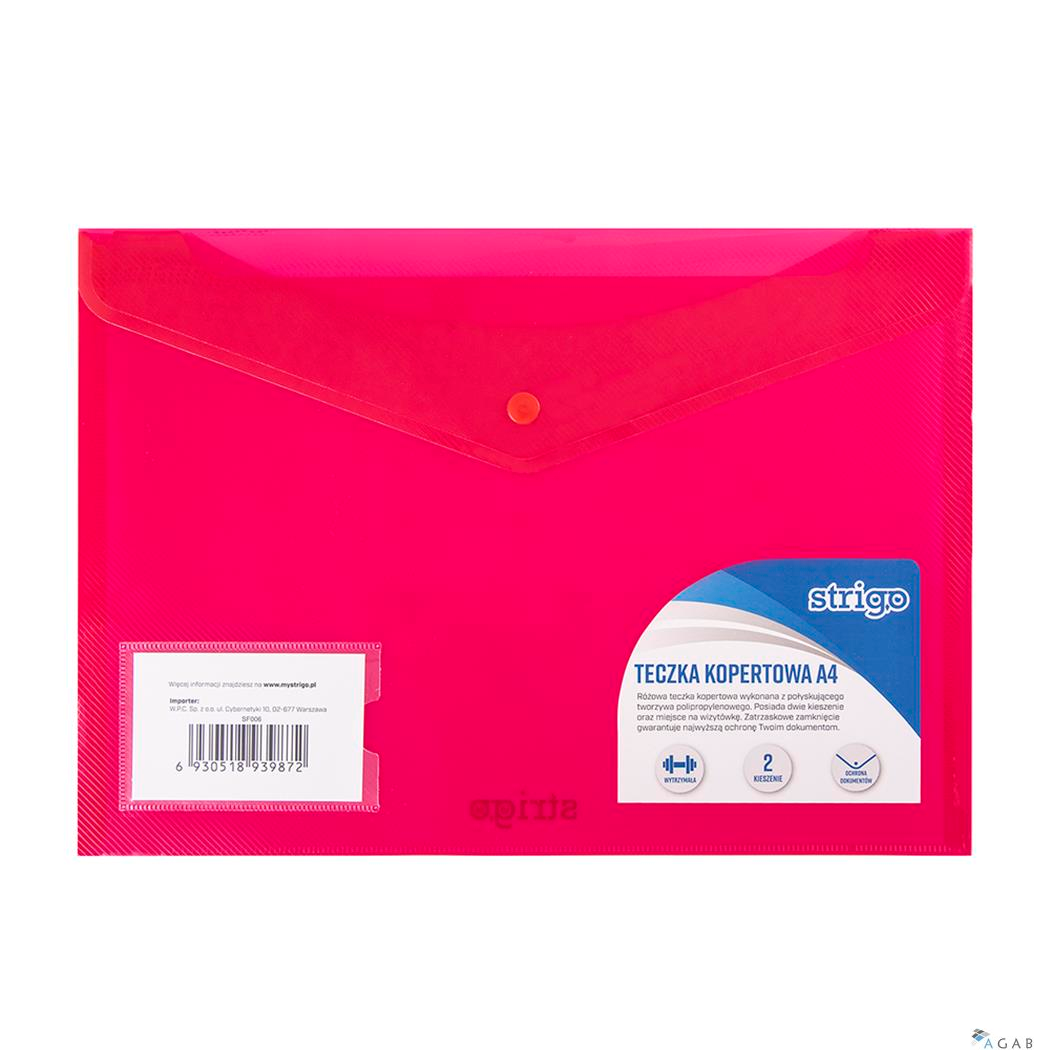 Teczka kopertowa PP A4 pozioma różowa 2kiesz. SF006 STRIGO