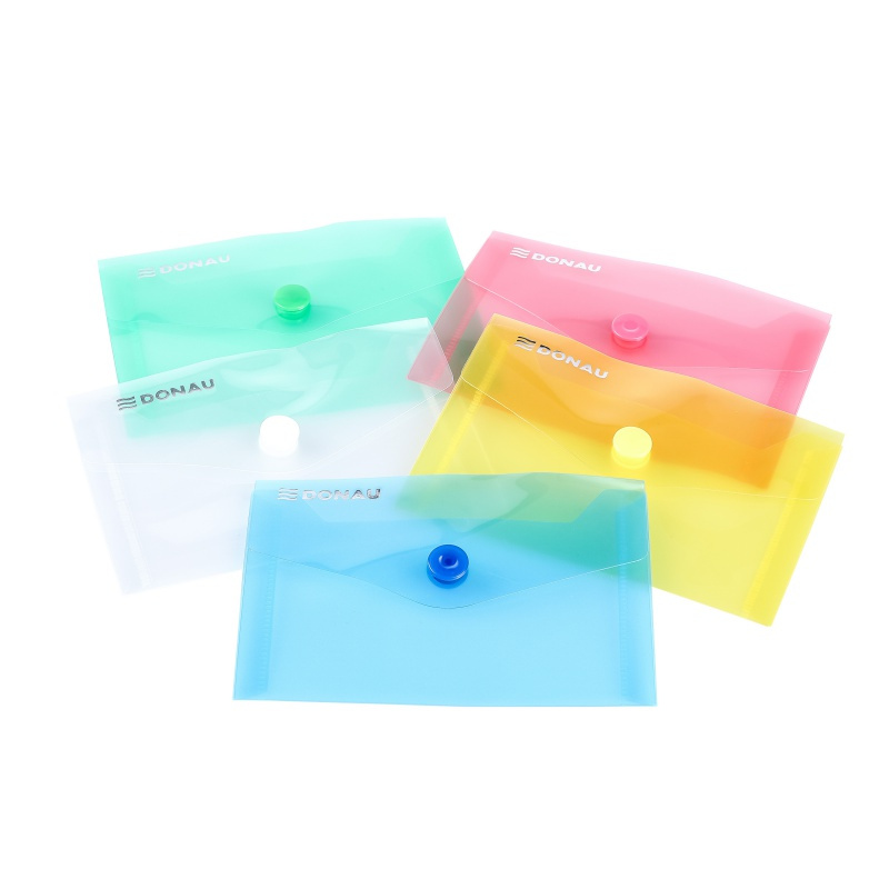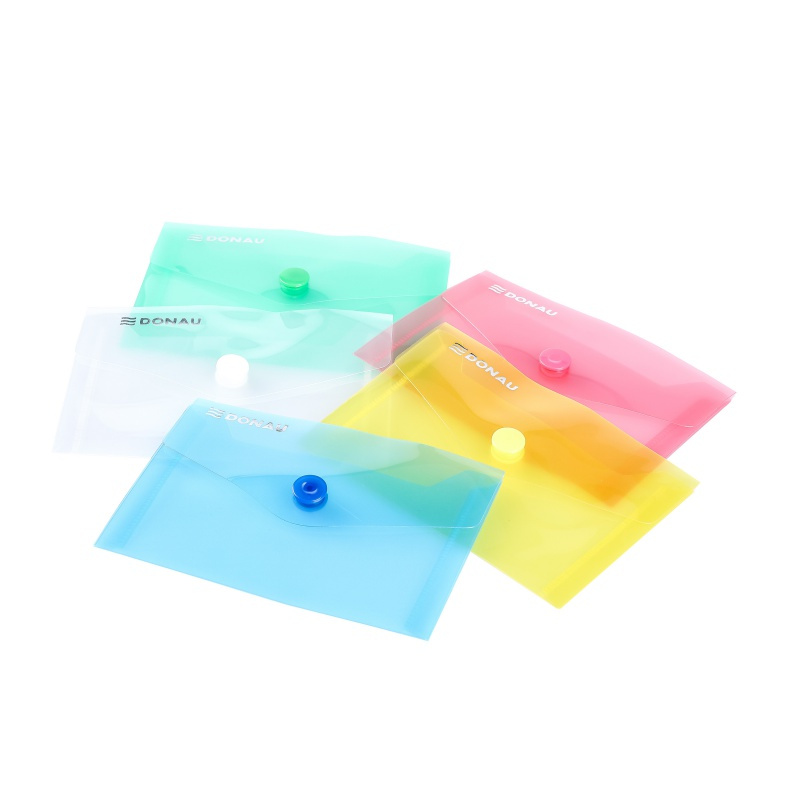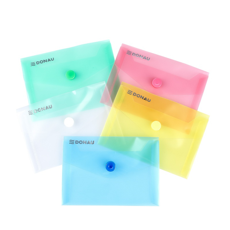 Teczka kopertowa, PP, A7, 85 x 120 x 8 mm, 0,18MIC na zatrzask, display, mix