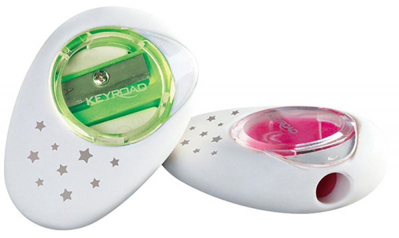 Temperówka KEYROAD Cappy, plastikowa, pojedyncza, z gumką, pakowane na displayu, mix kolorów