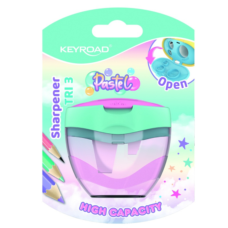 Temperówka plastikowa KEYROAD, pastel, potrójna, z pojemnikiem, blister, mix kolorów