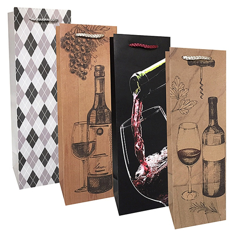 Torba prezentowa, na butelkę, 10,5x33x8,5cm, mix 4 wzorów