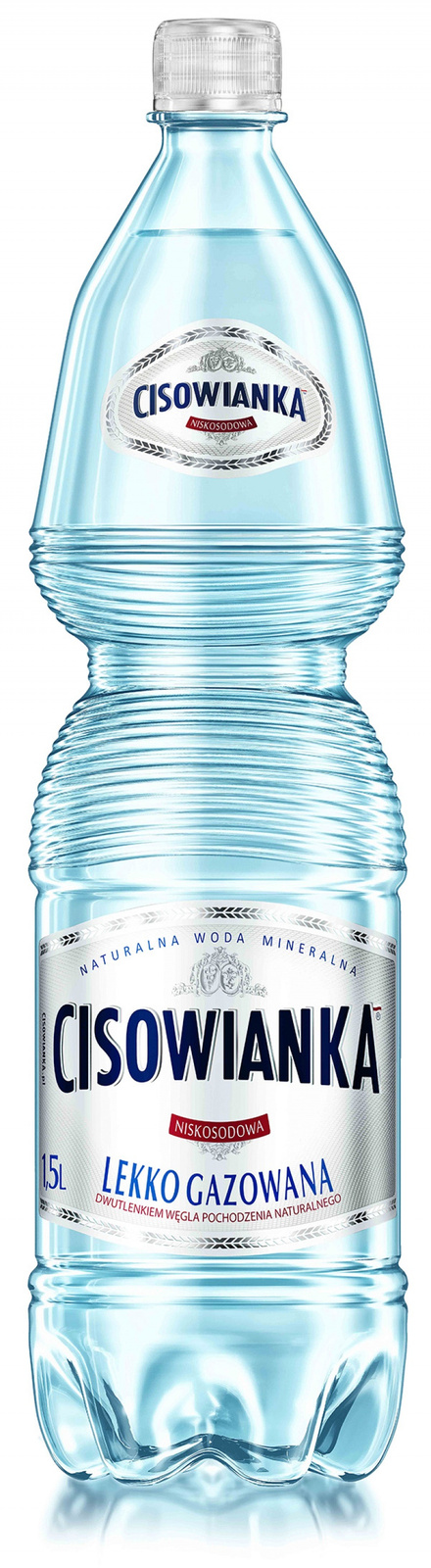naturalna woda mineralna Cisowianka, średnio zmineralizowana, lekko nasycona dwutlenkiem węgla pochodzenia naturalnego