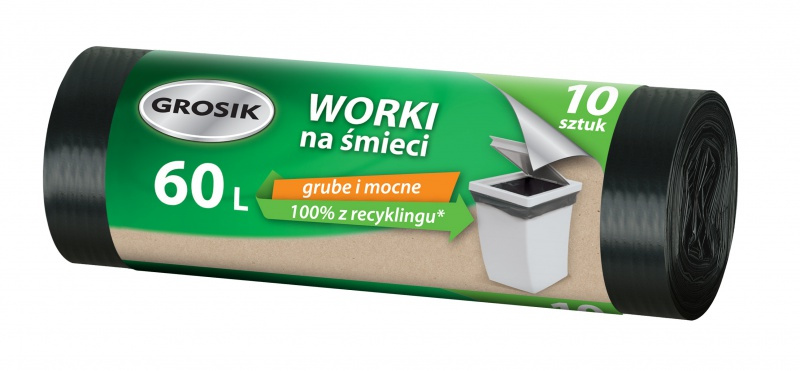 Worki na śmieci GROSIK, LDPE, 60l, 10 szt., czarne