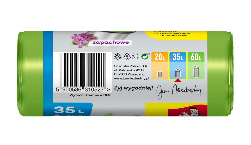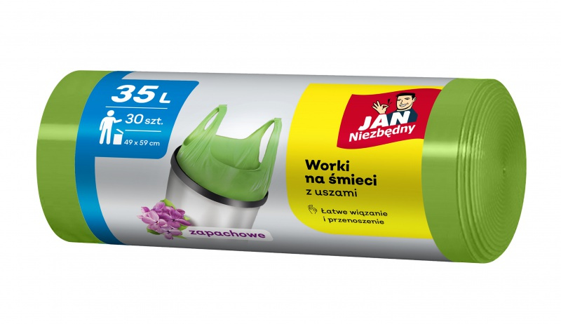 Worki na śmieci JAN NIEZBĘDNY, HDPE, t-shirt, 35l, 30szt., zielone