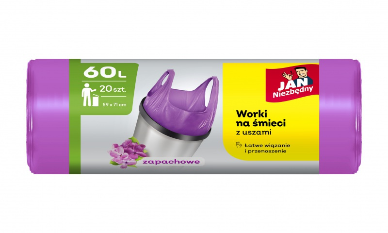 Worki na śmieci JAN NIEZBĘDNY, HDPE, t-shirt, 60l, 20szt., fioletowe