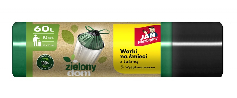 Worki na śmieci JAN NIEZBĘDNY, zielony dom, z taśmą, 60l, 10szt., czarno-zielone