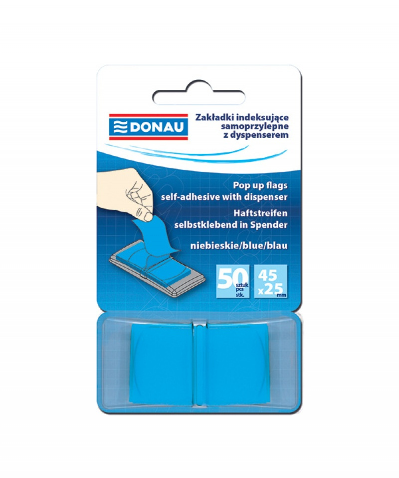 Zakładki indeksujące DONAU, PP, 25x45mm, 1x50 kart., niebieskie