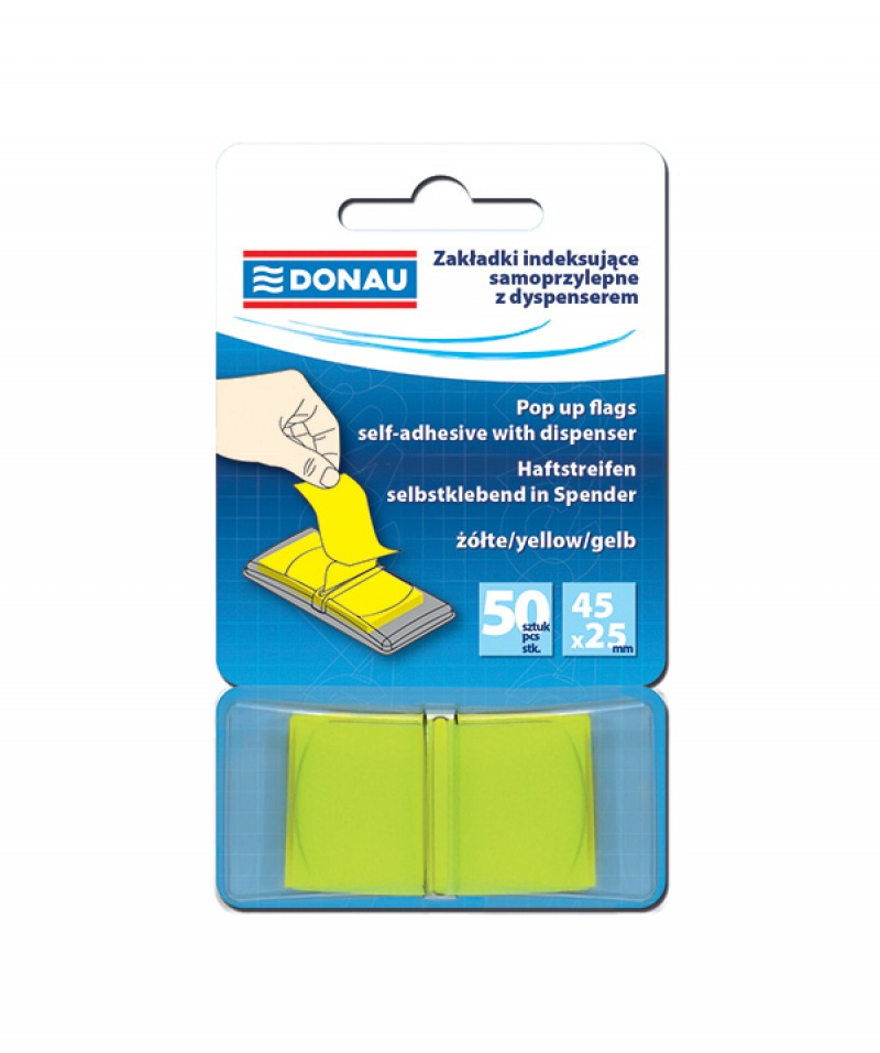 Zakładki indeksujące DONAU, PP, 25x45mm, 1x50 kart., żółte