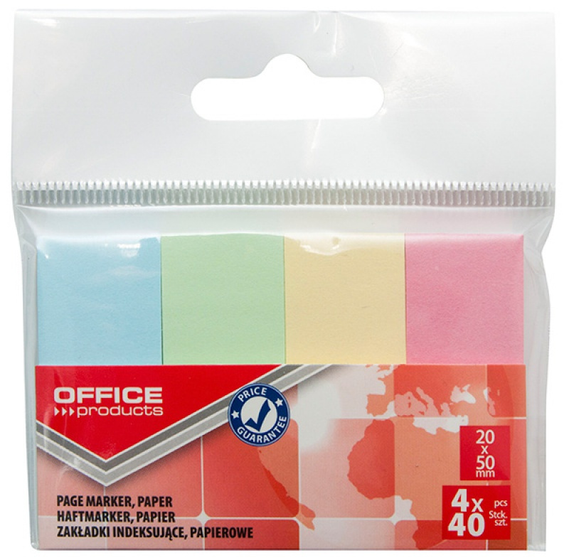 Zakładki indeksujące OFFICE PRODUCTS, papier, 20x50mm, 4x40 kart., zawieszka, mix kolorów pastel