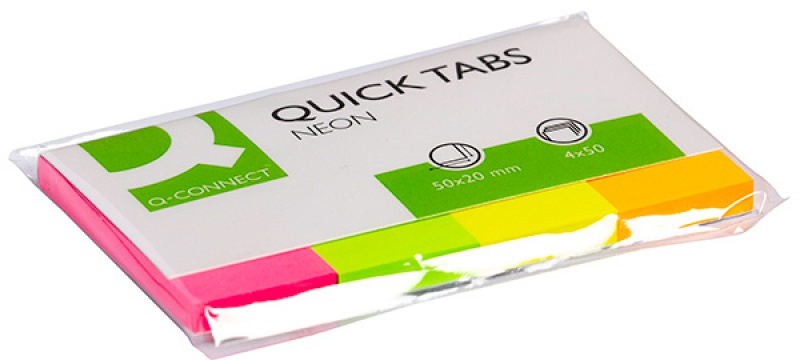 Zakładki indeksujące Q-CONNECT, papier, 20x50mm, 4x50 kart., mix kolorów