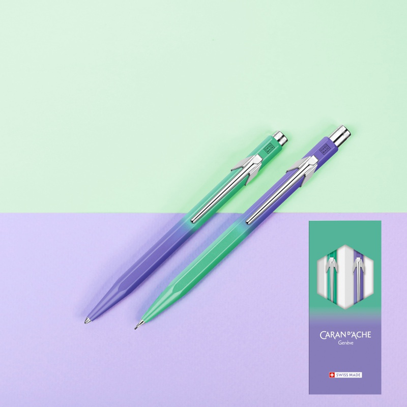 Zestaw długopis 849 i ołówek 844 Caran d’Ache Borealis, fioletowo-zielony