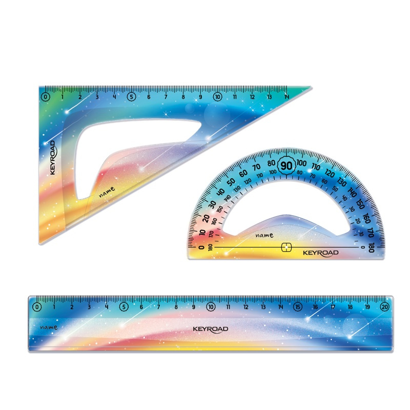 zestaw: linijka 20cm, kątomierz 10cm, ekierka 14cm