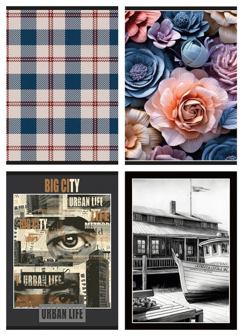 Zeszyt szkolny GIMBOO, A5, w kratkę, 80 kart., 70gsm, mix wzorów