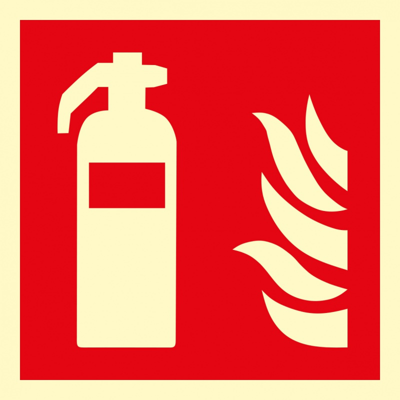 Znak - Gaśnica Wymiary 150x150 mm Na płycie PCV 1mm Fluorescencyjny