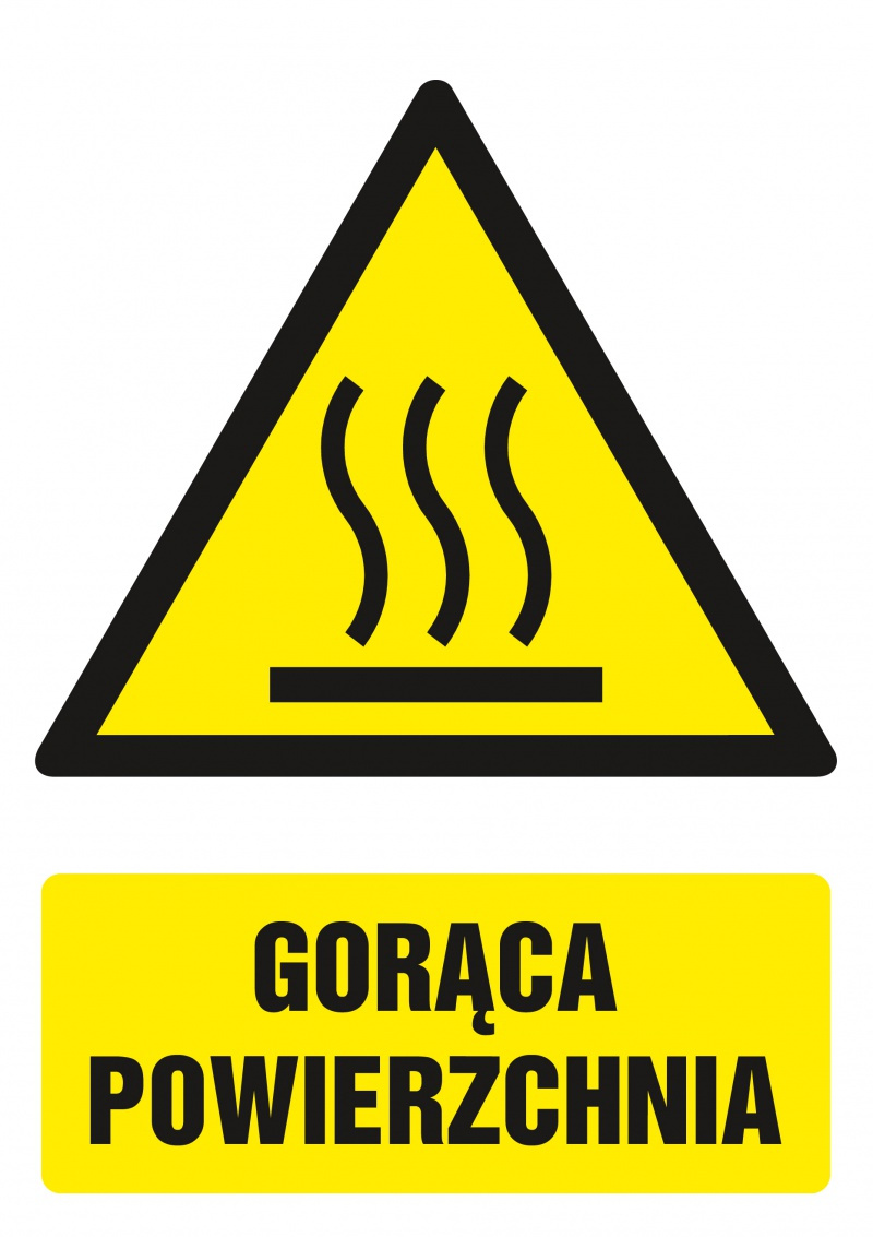 Znak Gorąca powierzchnia Wymiary 105x148 mm Na płycie PCV 1mm Nieświecący