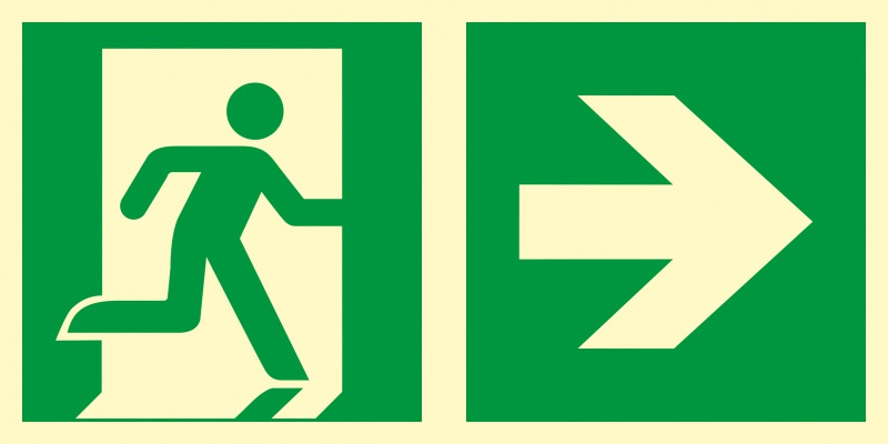 Znak - Kierunek do wyjścia ewakuacyjnego – w prawo 1