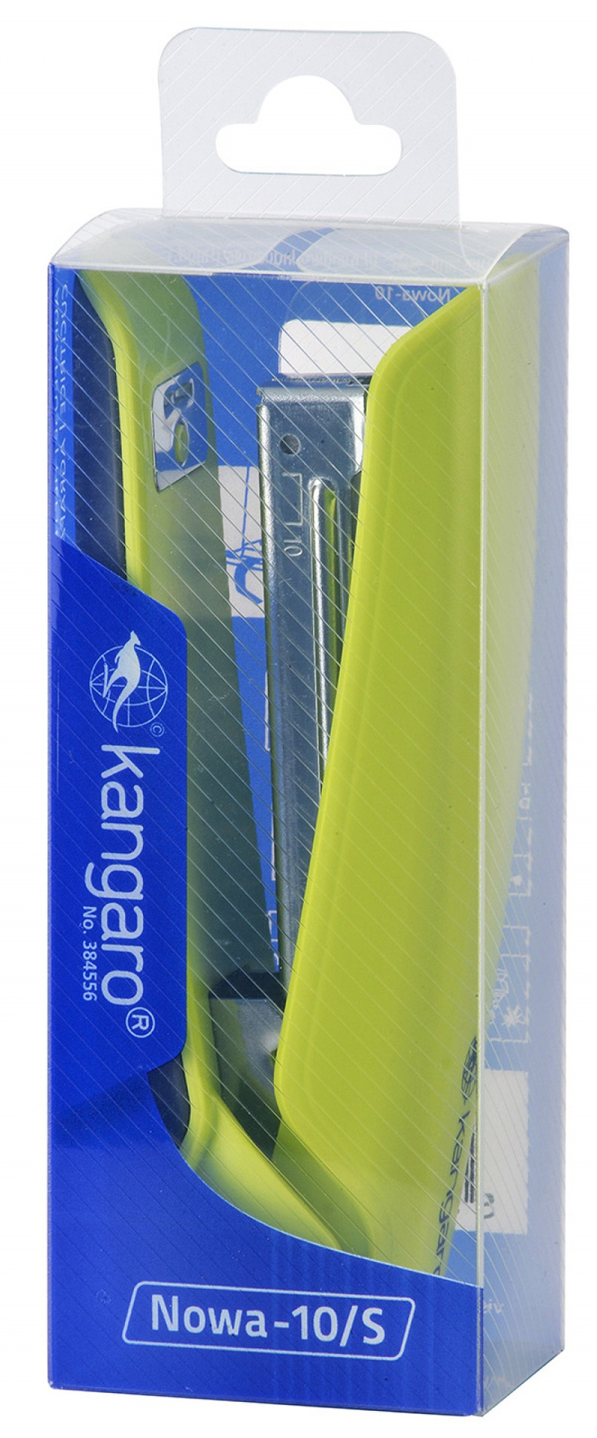 Zszywacz KANGARO Nowa-10/S, zszywa do 15 kartek, plastikowy, w pudełku PP, zielony